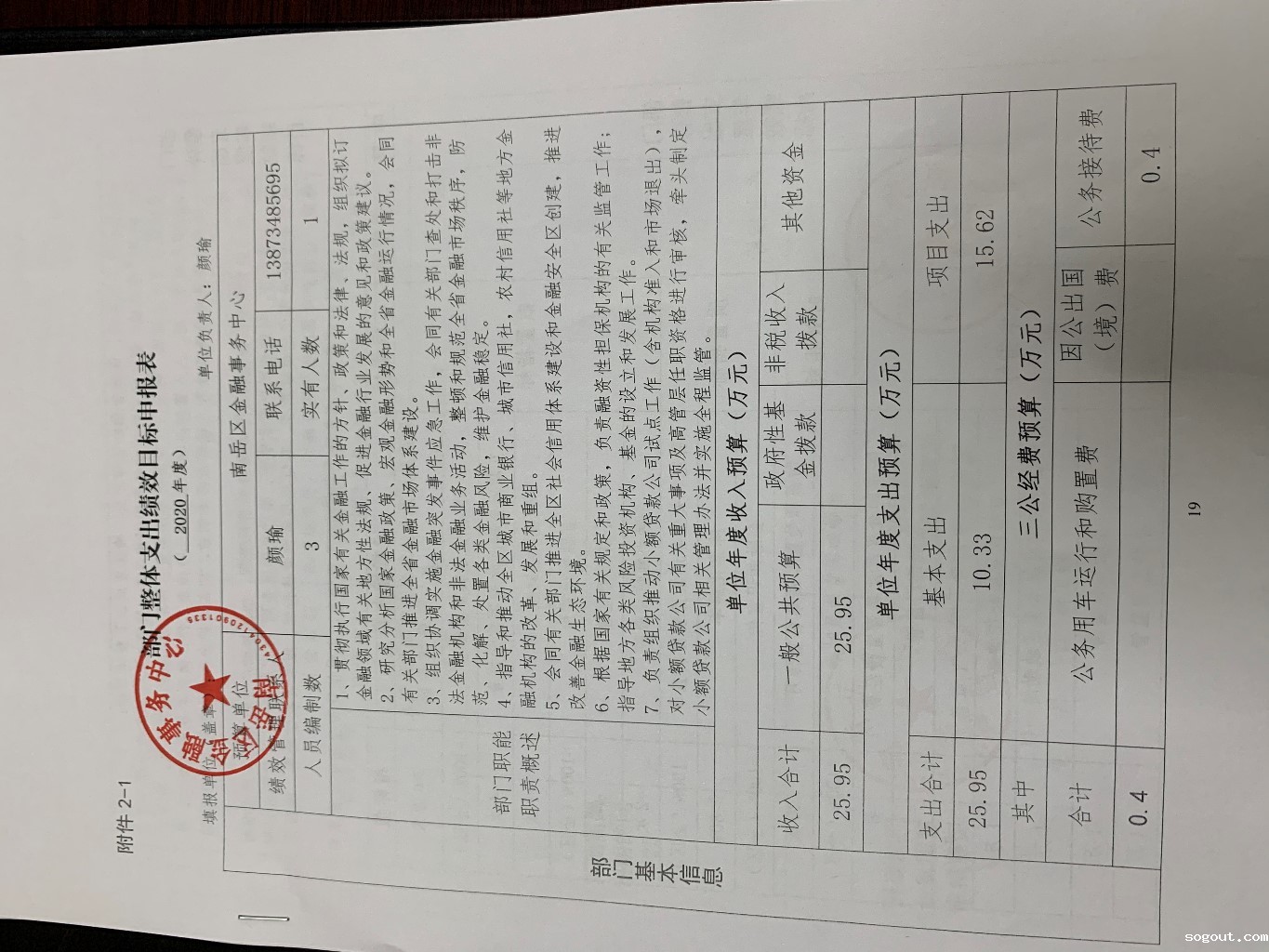 金融事务中心2020年部门整体绩效表