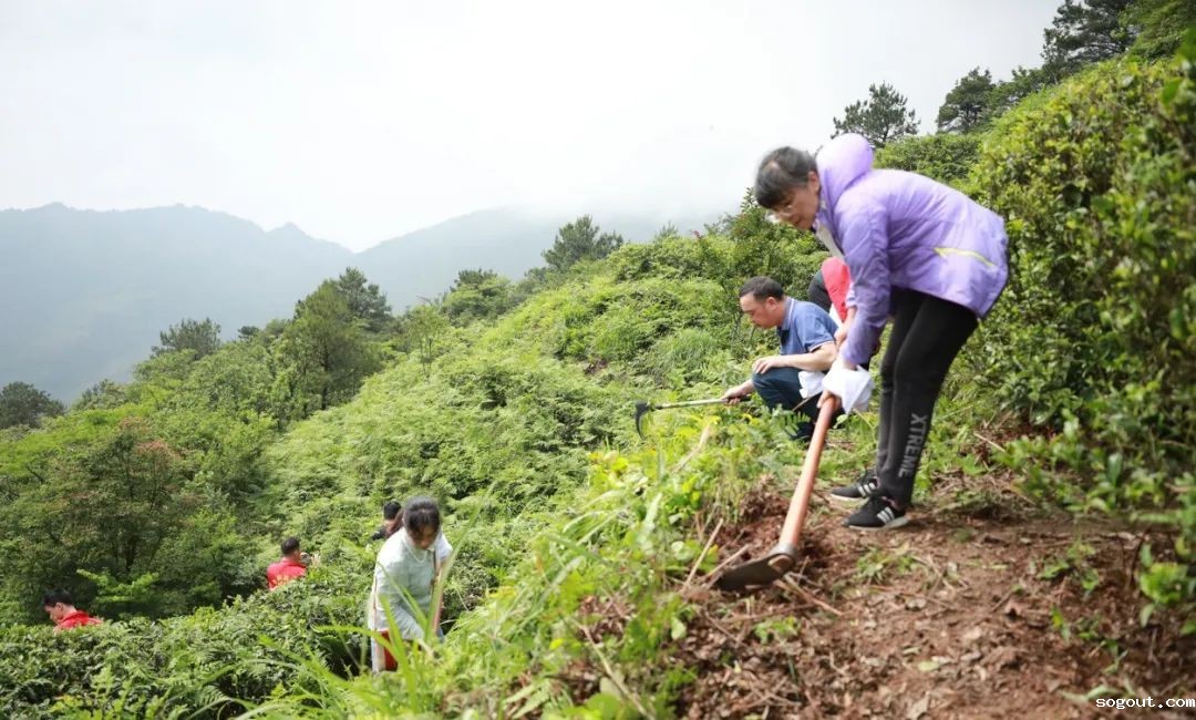 雷竞技游戏平台特色知青茶园位于寿岳乡华盖峰下,因年久失管,茶园里的茶带很多已隐匿在杂草中。活动开始后,党员志愿者们自觉分组分片,分工协作,有的拿锄头,有的拿镰刀,没有工具的用双手,有的负责除草,有的负责清理,热火朝天地干起来。艳阳高照,顺着脸颊流下的汗珠让他们睁不开眼,尽管衣襟湿透、手掌起泡,但他们仍干劲十足,穿梭于茶园中。经过一上午的不懈努力,大大改善了茶园环境,茶园里的道路变得更清晰,茶带的杂草被清除,大家成就感满满,也从内心深处体会“战天斗地、苦干实干”的板贵精神。