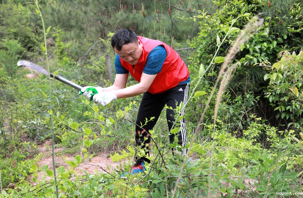 党员志愿者分成两个小组来到劳动现场,各组人员在组长的带领下,分头展开行动。大家利用手中的工具,对原有的防火线、防火隔带所有灌木、杂草、腐朽木、枯枝落叶、腐殖质等可燃物进行集中清理。劳动现场,两个组你追我赶,大家相互比干劲、比标准、比速度……呈现出一派热火朝天的劳动景象。