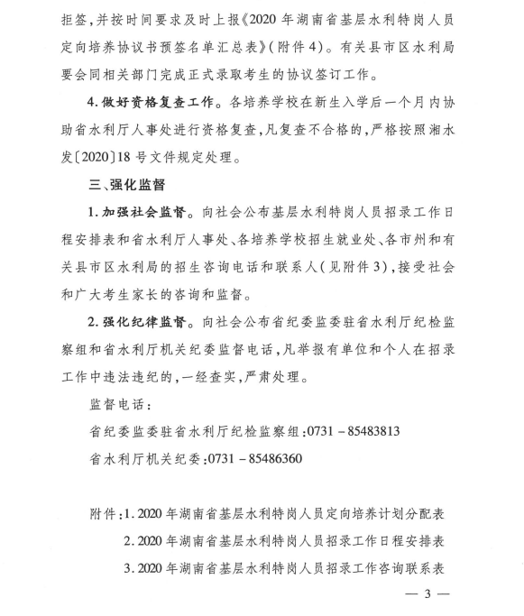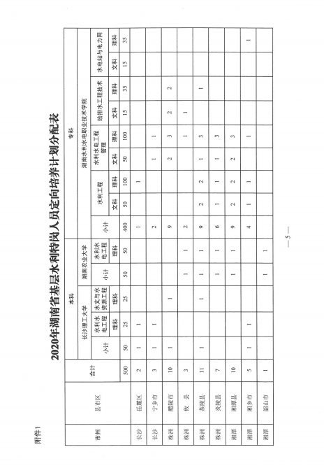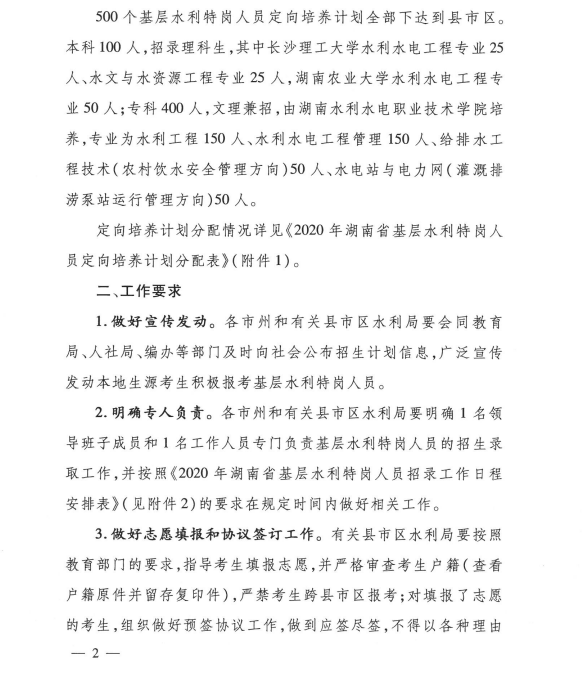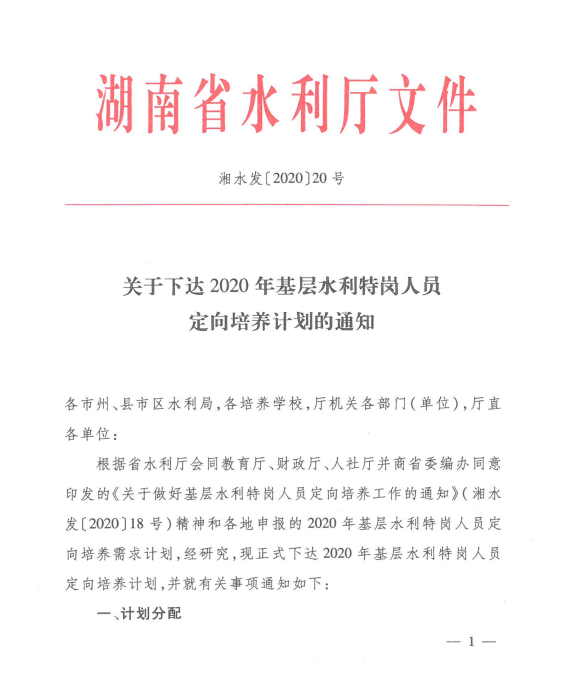 关于下达2020年基层水利特岗人员定向培养计划的通知