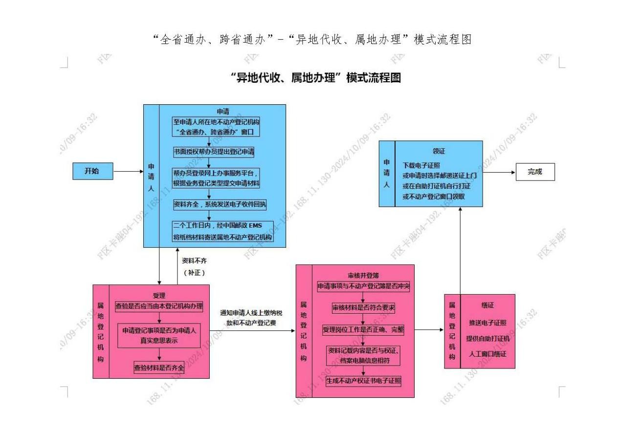 企业群众可以通过网上办理渠道提交业务申请,也可向异地不动产登记中心现场申请办理。三种通办模式流程图如下: