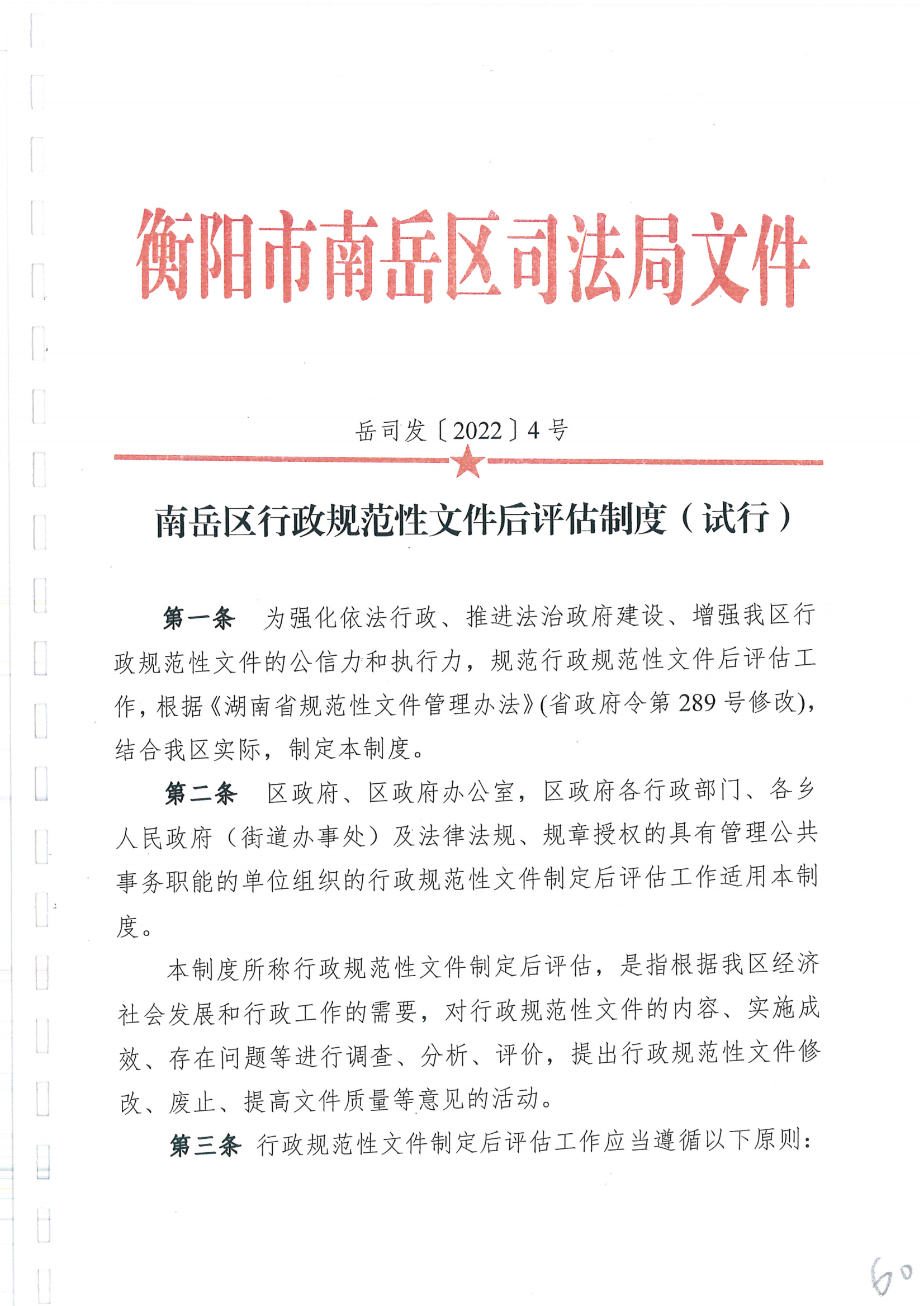 《雷竞技游戏平台特色行政规范性文件后评估制度(试行)》
