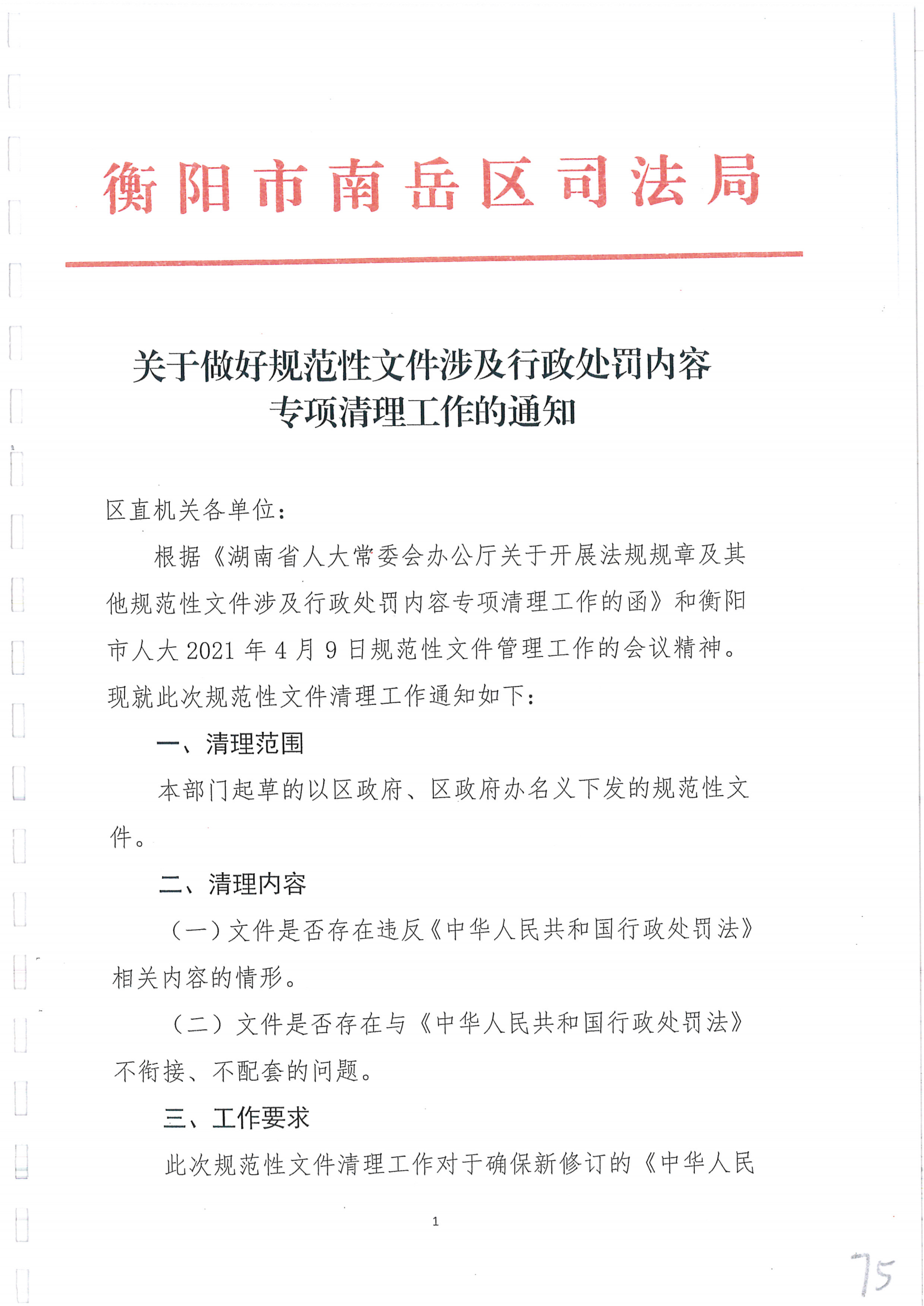 《关于做好规范性文件涉及行政处罚内容专项清理工作的通知》