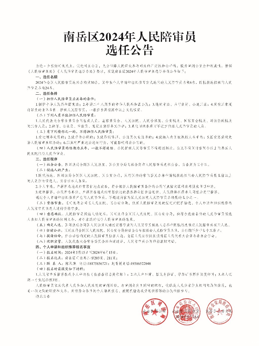 雷竞技游戏平台特色2024年人民陪审员选任公告