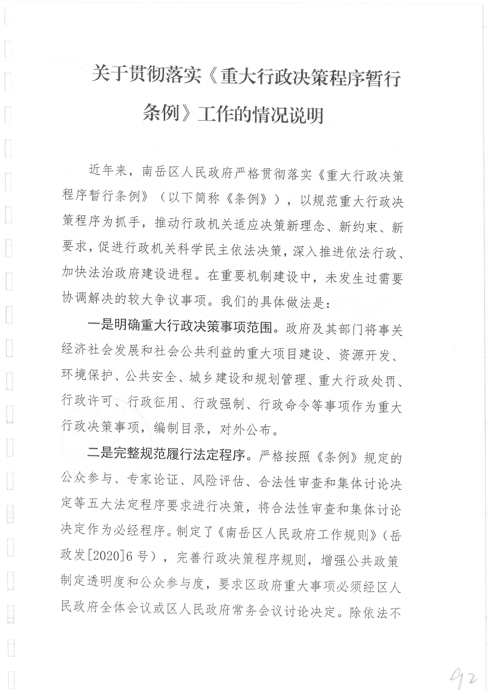 关于贯彻落实《重大行政决策程序暂行条例》工作的情况说明