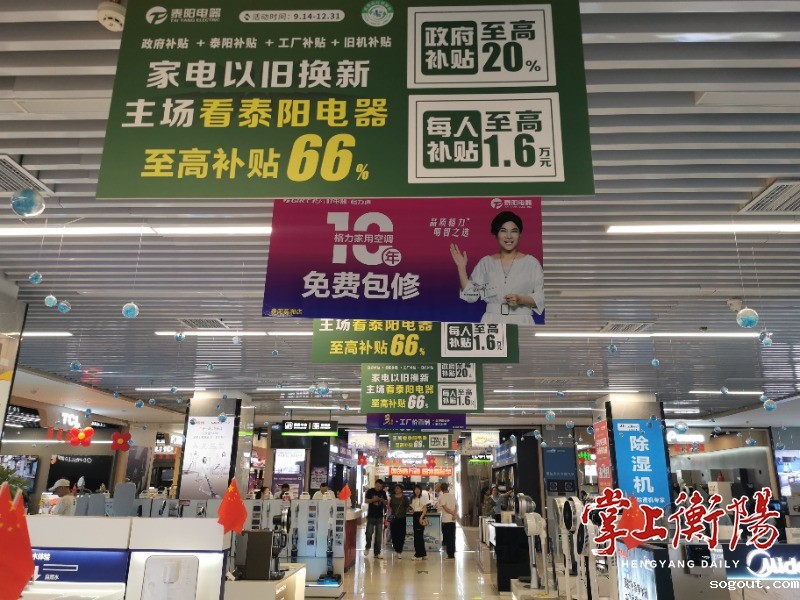 在泰阳电器各大门店,到处可见“以旧换新”的宣传标识——“一级能效家电补贴20%,二级能效补贴15%,每人至高补贴1.6万元”,丰富的补贴让利吸引不少消费者前来选购。“家里的卧室空调用了7、8年了,听说此次以旧换新优惠力度很大,趁着国庆放假,我们过来看看。”在泰阳电器蒸湘店,李先生看中了一款节能空调,原价4699元,店铺优惠后3899元再叠加政府20%的补贴和旧机补贴,到手价2890元,非常划算。