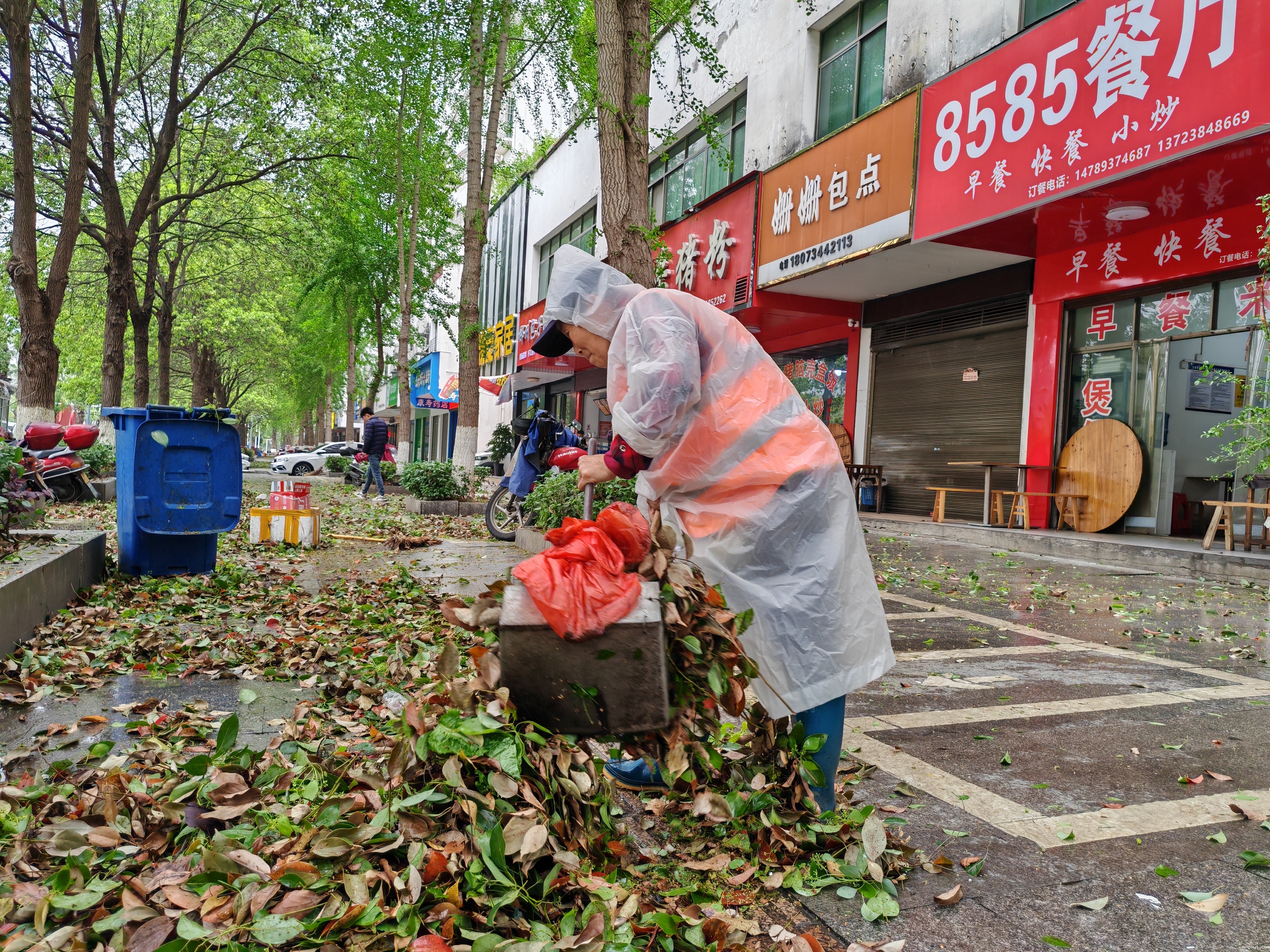暴风雨过后,城区大小路段、花带等区域遍布残枝落叶、白色垃圾,一片狼藉。南岳环卫第一时间启动应急预案,加大防范和巡查力度,嘱咐环卫工人安全作业,时刻注意人身安全,避免高空坠物砸伤等事故的发生。全体环卫人发扬"宁愿一人脏,换来万家净"的精神,全身心投入到城区垃圾清理、保洁工作中,并加大了城区钢化桶、移动斗、中转站垃圾清运力度,增加了洒水车冲洗、道路护栏清洗频次。在全体环卫人共同努力、各项任务落实落细下,南岳城区露出了她原本美丽的"容颜"。