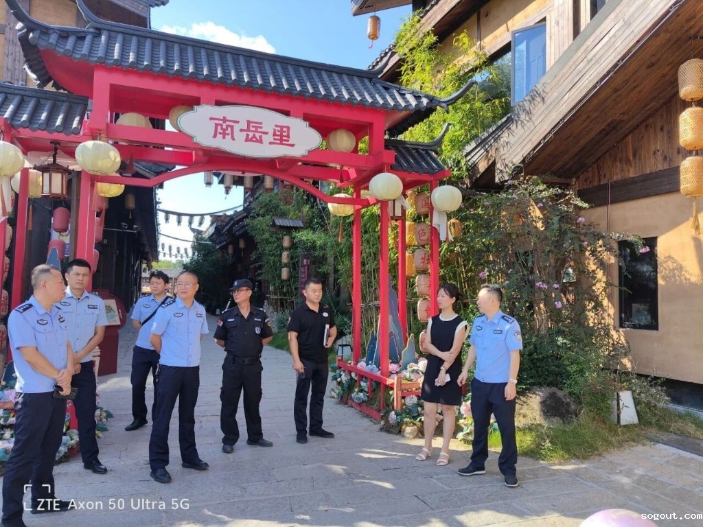 分局党委委员、副局长王智军率南岳派出所、交警、旅警联合开展安全检查,通过实地查看、听取汇报、与工作人员询问交流等方式,对景区内基础设施、人员配备、应急疏散等方面进行全方面的了解摸排,全面掌握景区运营状况情况,排除任何可能存在的安全隐患。
