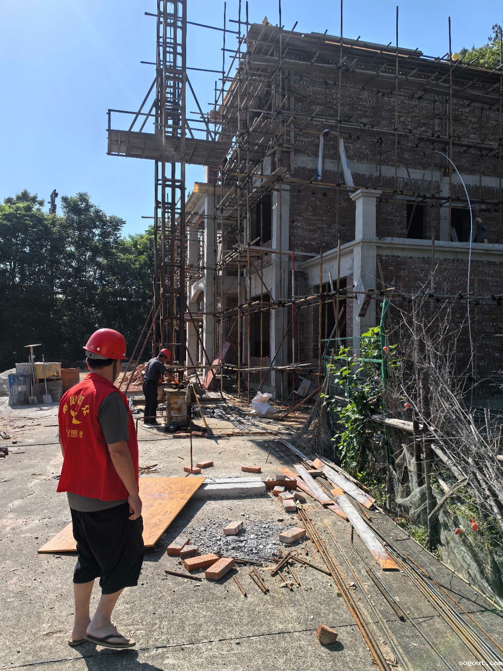 5月14日,镇党委委员、组织委员龚保林在新村民宿集群督促项目进度,检查安全生产工作。