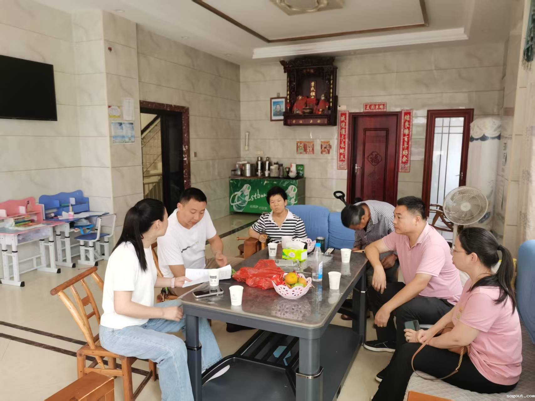5月22日,镇党委副书记、政法委员周婷,镇党委委员、纪委谭校生在延寿村参加屋场恳谈会。