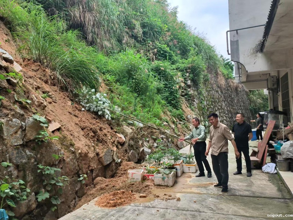 5月22日,镇自然资源所、镇退役军人服务站和技术人员到新村村勘查塌方现场。
