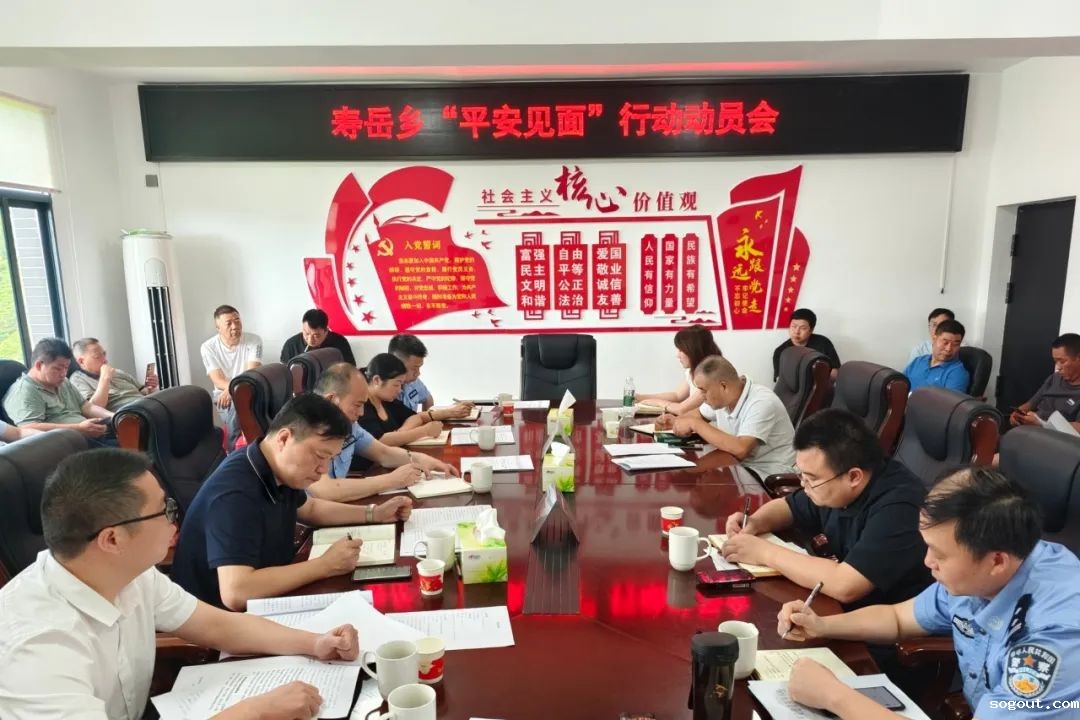 7月18日上午,寿岳乡召开第二轮"平安见面"行动动员会,乡全体干部职工、各村书记、综治专干参加会议,衡阳市公安局南岳分局副局长杨庆华出席会议。