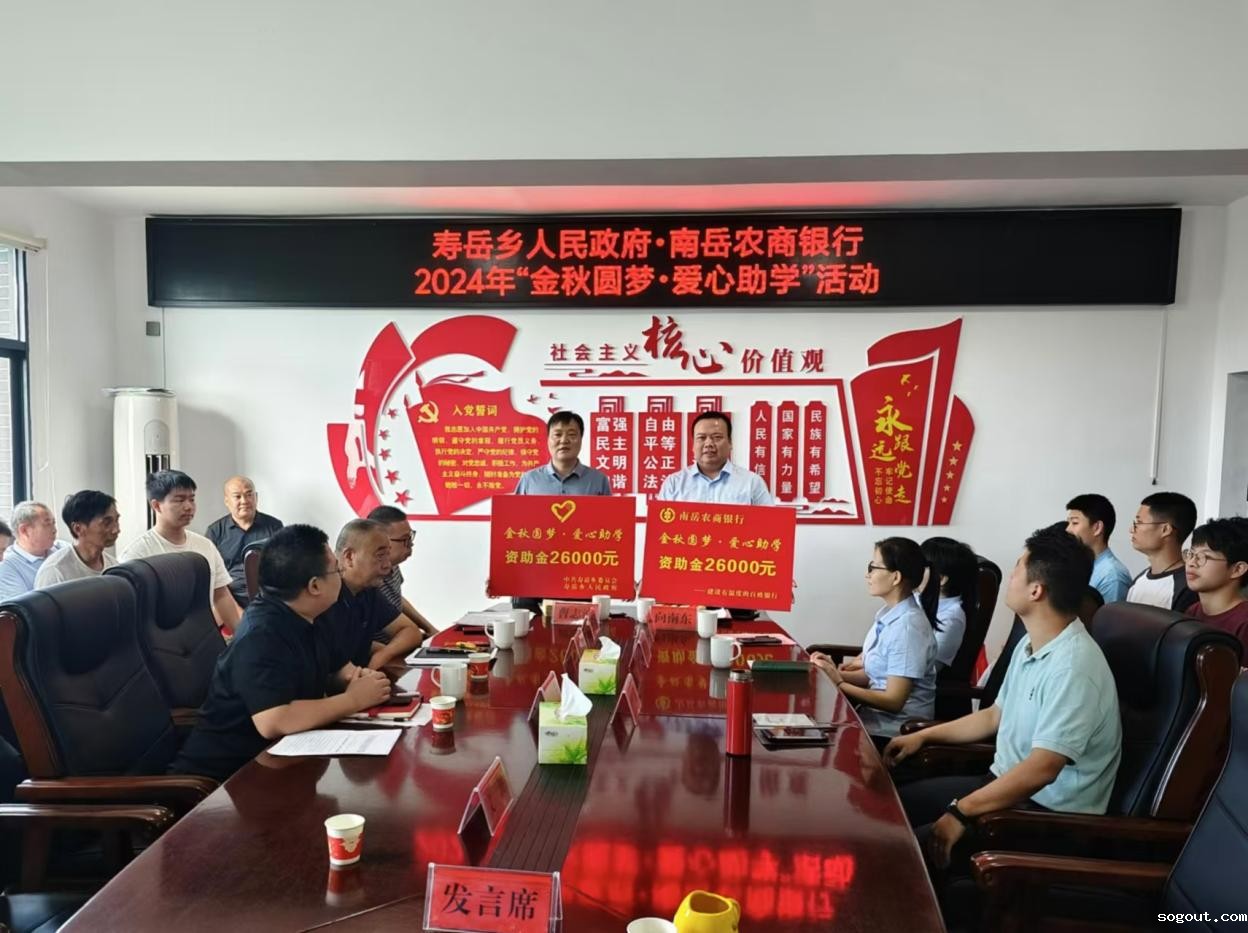 金秋硕果盈满仓,喜送学子乘风翔。8月23日上午,寿岳乡人民政府携手南岳农商银行举办2024年"金秋圆梦·爱心助学"活动,为今年考取大学的26名学子共发放助学金52000元,助力学子圆梦前行。寿岳乡全体党政班子成员,南岳农商银行党委副书记、副董事长、行长向南东等出席活动。
