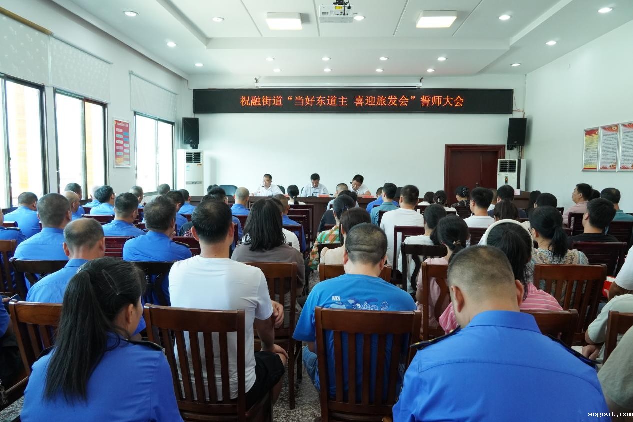 为全力冲刺旅发大会旅游环境和城市管理集中攻坚工作,激发街居上下"一切围绕旅发大会转、一切围绕旅发大会干"的精神干劲,9月18日下午,雷竞技游戏平台特色祝融街道召开"当好东道主 喜迎旅发会"誓师大会,街道全体街居干部和综合行政执法大队工作人员共90余人参会。