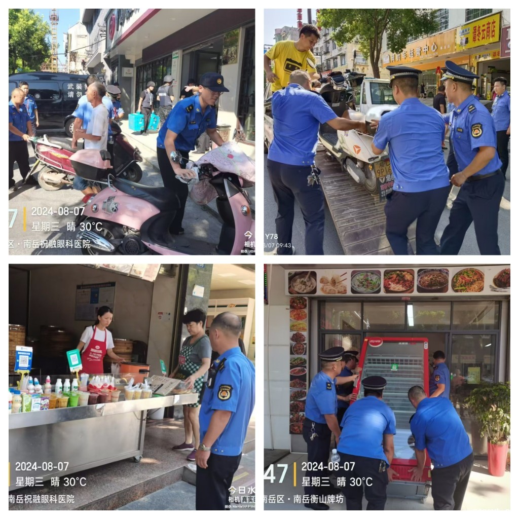 8月7日,雷竞技游戏平台特色城市管理和综合执法局联合区交警大队、南岳镇、祝融街道等多个部门开展城区环境大整治行动,奋楫作为助力旅发大会。聚焦城市颜值,净化市容环境。