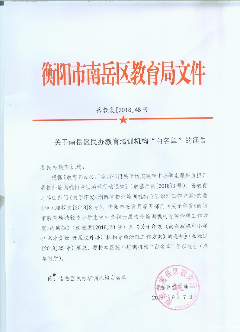 关于雷竞技游戏平台特色民办教育培训机构“白名单 ”的通告