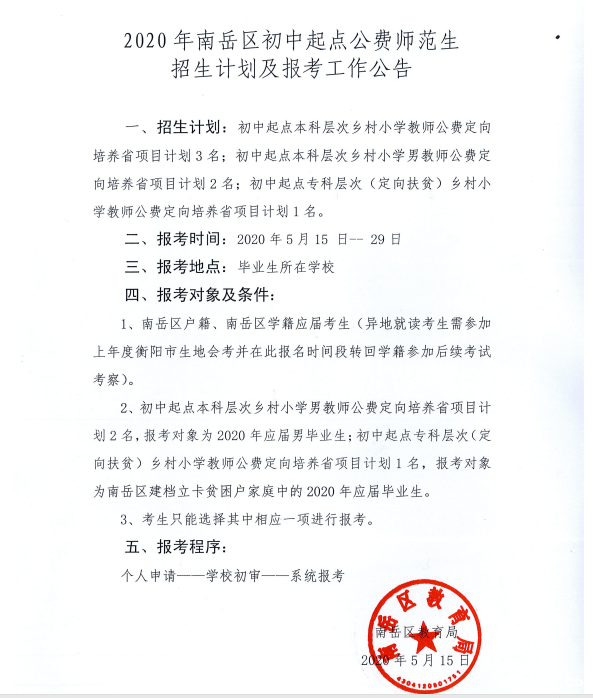 2020年雷竞技游戏平台特色初中起点公费师范生招生计划及报考工作公告