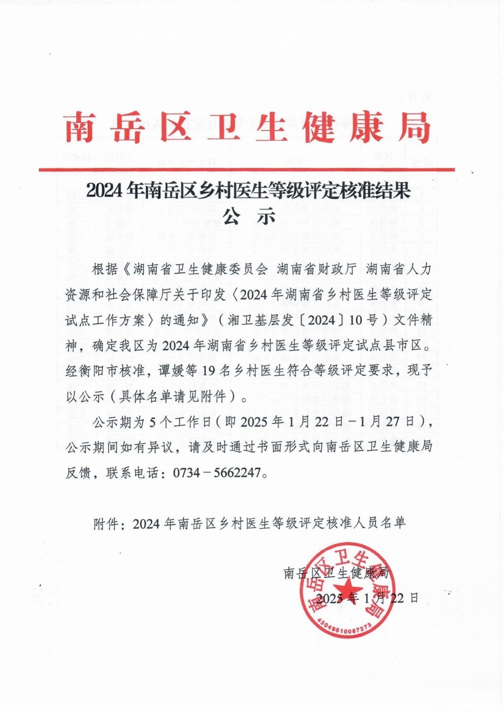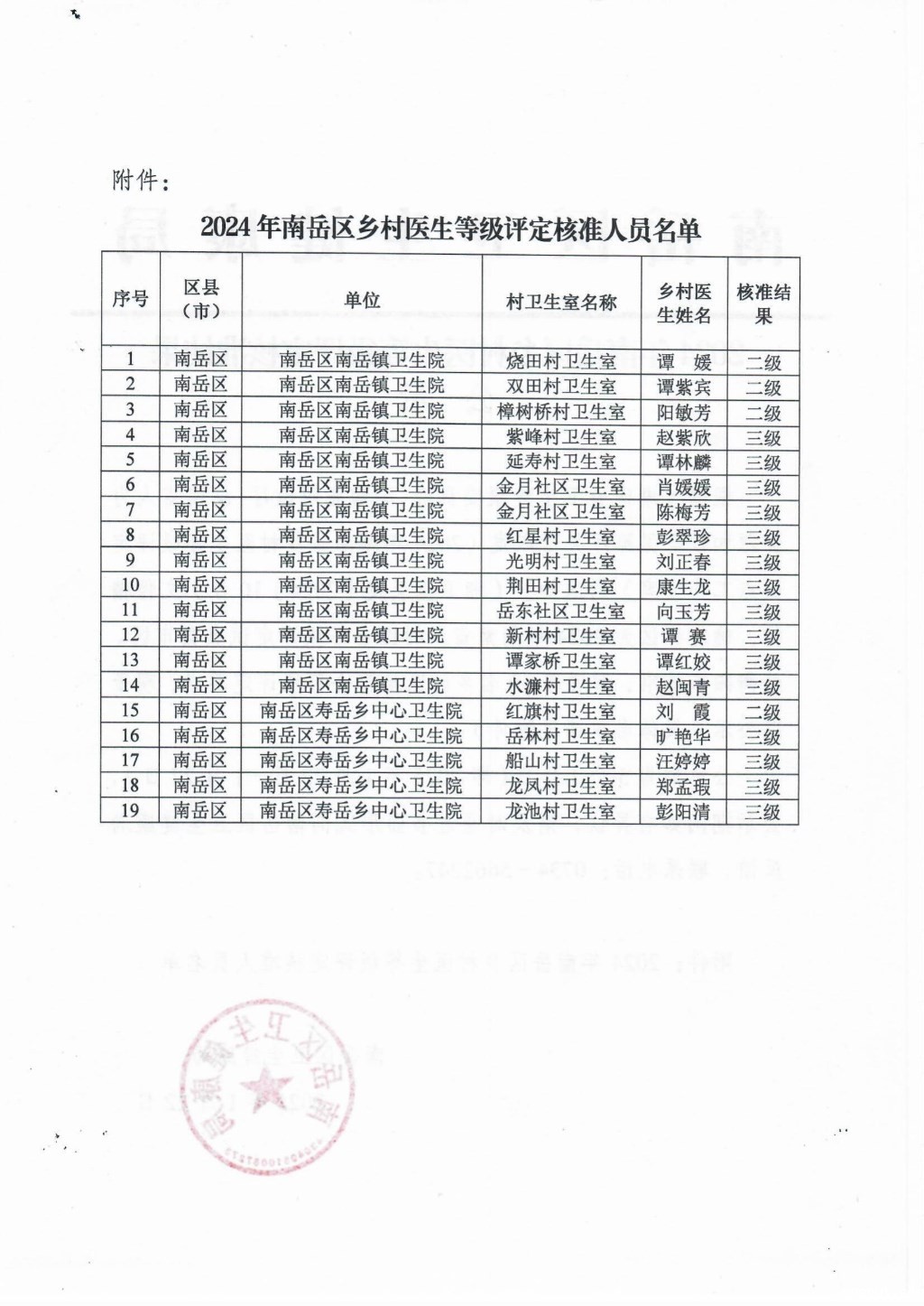 2024年雷竞技游戏平台特色乡村医生等级评定核准结果公示