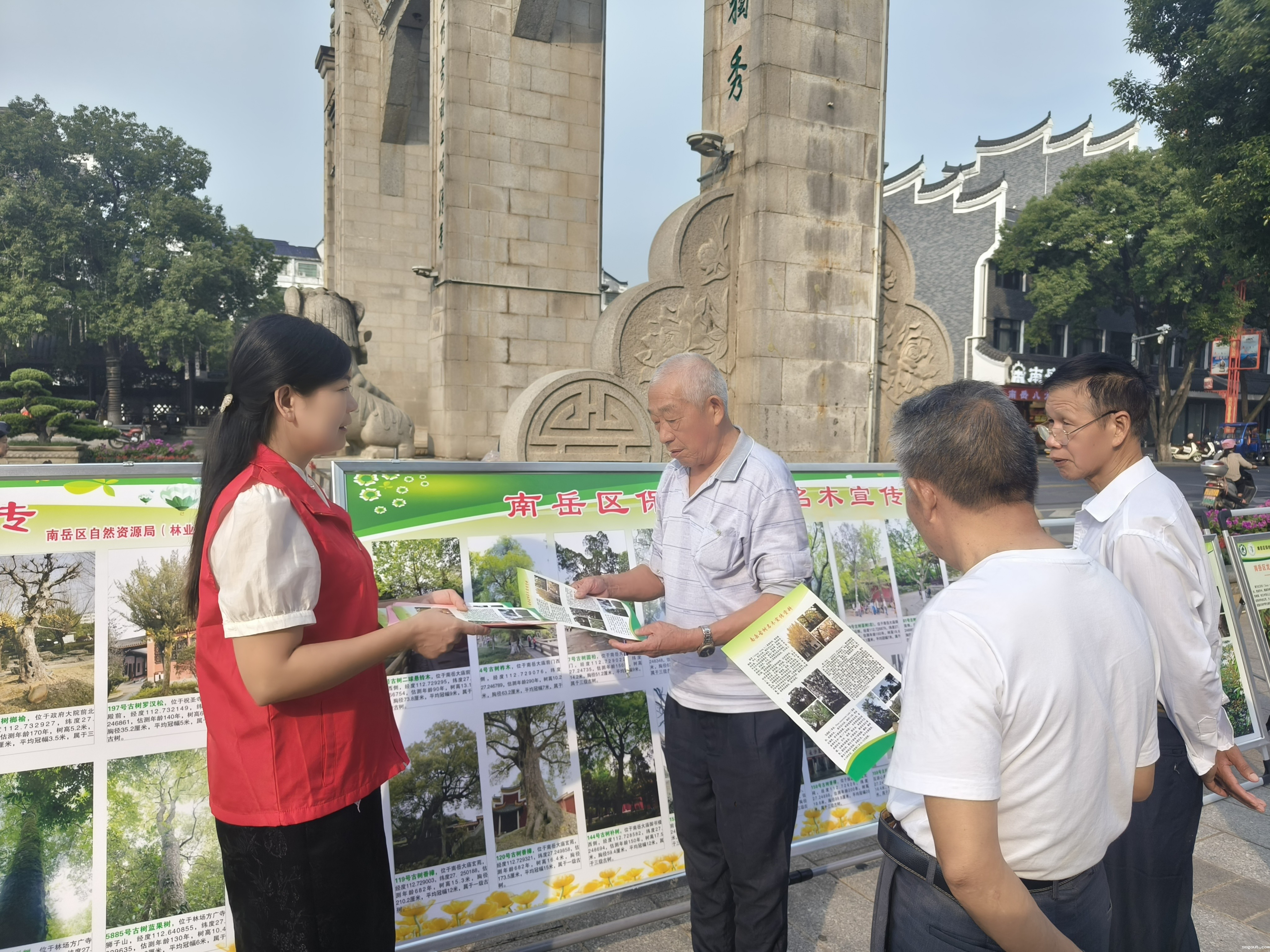 9月27日,雷竞技游戏平台特色自然资源局(林业局)组织国有林场、风景名胜资源事务中心等单位在南岳牌坊开展以"保护古树名木 全民共建共享"为主题的古树名木保护科普宣传周活动。