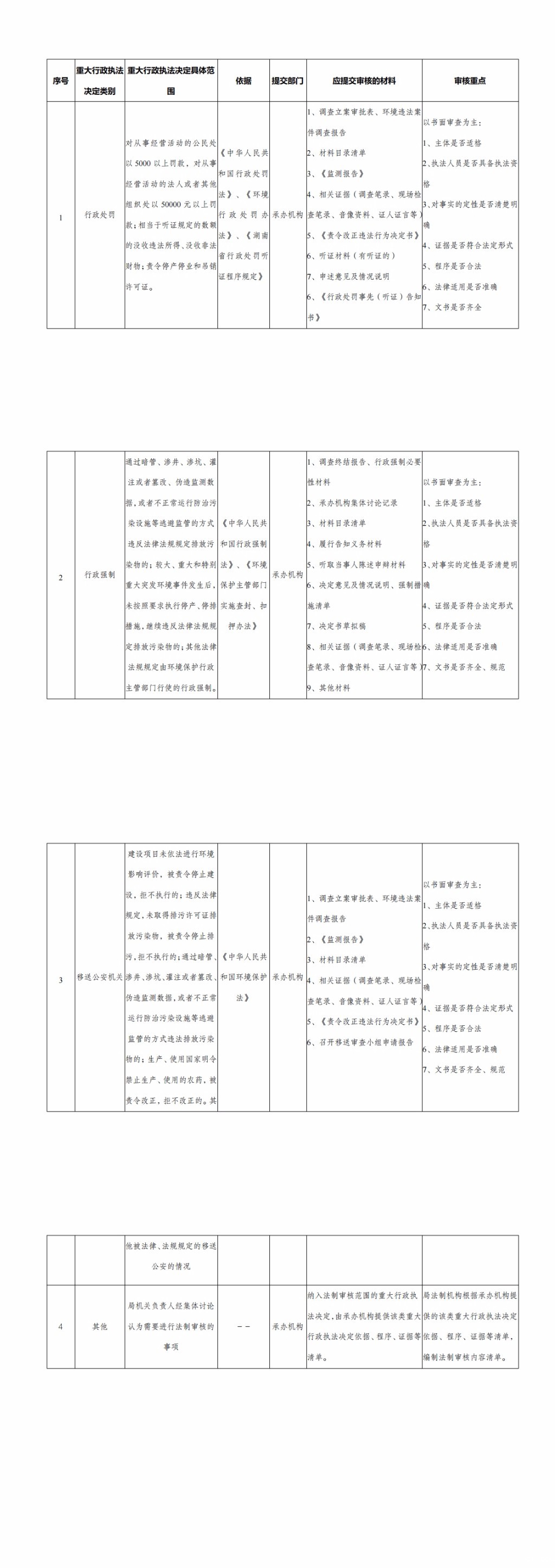 衡阳市生态环境局南岳分局重大行政执法决定法制审核清单